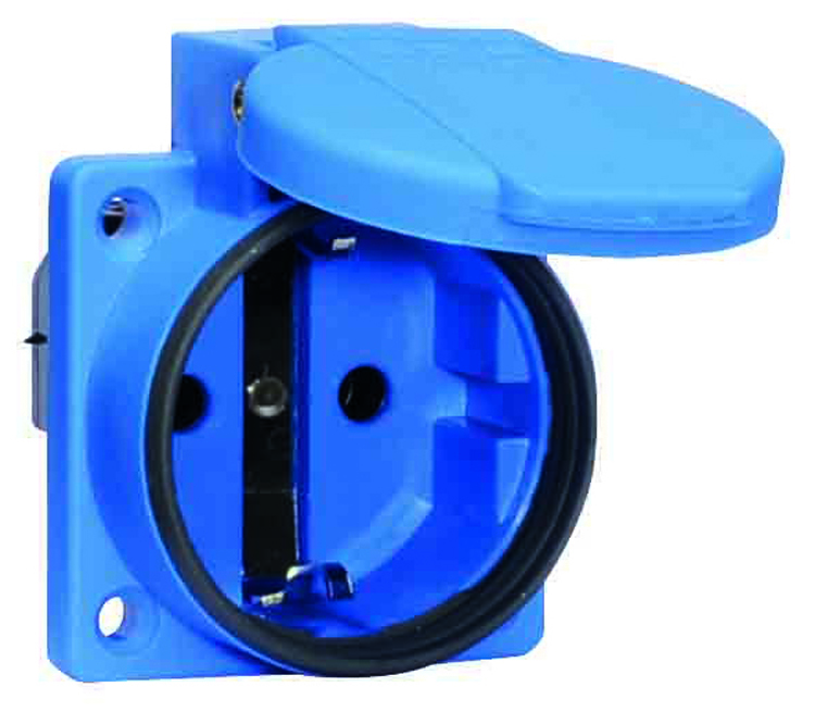 Die neue Fassung der DIN VDE 0620 beinhaltet eine wichtige Änderung für die Auswahl von Schutzkontakt Anbausteckdosen auf Verteilersystemen. Bei den IPX4 Steckdosen wird zwischen ortsfesten und ortsveränderlichen (mobilen) Einsatzbedingungen unterschieden. Die IPX4 Steckdosen für ortsveränderlichen Einsatz müssen mit einem zusätzlichen Dichtkragen ausgestattet sein, dieser gewährleistet eine Schutzart von IP44 im gesteckten Zustand mit einem IPX4 Stecker. Mobiler Verteiler mit Schutzkontakt-Steckdose IP54 (mit Dichtkragen) für ortsveränderliche Verteiler.