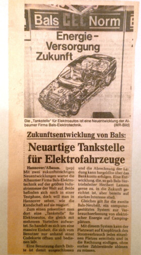 A newspaper report from 1992 reported the first "service station" for electric vehicles.