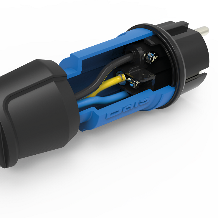 All domestic plugs and connectors up to protection degree IP 54 are available in two-part housing and with MULTI-GRIP. All the well-known and proven advantages of the special cable gland are also confirmed here: From the optimal strain relief for small and large cable diameters to the quick and safe closing of the gland due to the double-thread.
