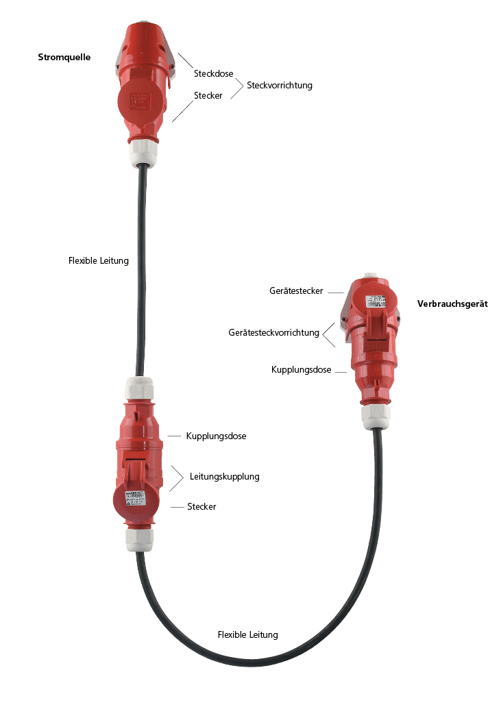 Begriffserklärungen basierend auf dem internationalen Standard VDE 0623/EN 60309 für „Stecker, Steckdosen und Kupplungen für industrielle Anwendungen“
